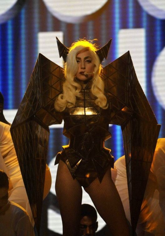 La cantante se presentó ante el público en una bañera gigante rodeada de sus bailarines, que se retorcían con las duchas. Gaga llevó un extravagante atuendo que transformaba su femenina figura en un monstruoso murciélago a base de estructuras formadas por figuras triangulares.