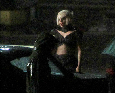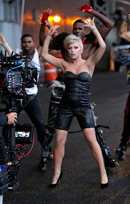 En las imágenes podemos ver a Lady Gaga con el pelo corto rubio, los labios azules y llevando un corto body de cuero, realizando una coreografía con sus bailarines. En otras fotos luce un traje rojo con un gran sombrero metálico con forma de antena parabólica.